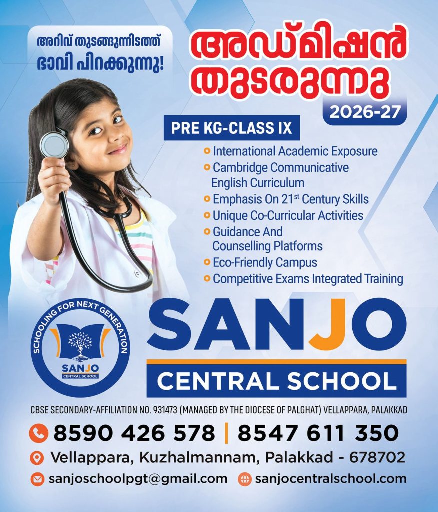 A vibrant and promising institution under Sanjo Group of Institutions, situated at Sanjo Campus, Vellappara. Managed by the Catholic Diocese of Palghat, it stands as a beacon of holistic education, offering a co-educational environment committed to the all-round development of each child. With a team of dedicated and accomplished professionals, the school emphasizes academic rigor, ethical values, and life skills that prepare students for a successful future. Our learning environment is clean, well-organized, and ecologically conscious—ensuring students grow in a space that is safe, inspiring, and conducive to intellectual and personal growth.
